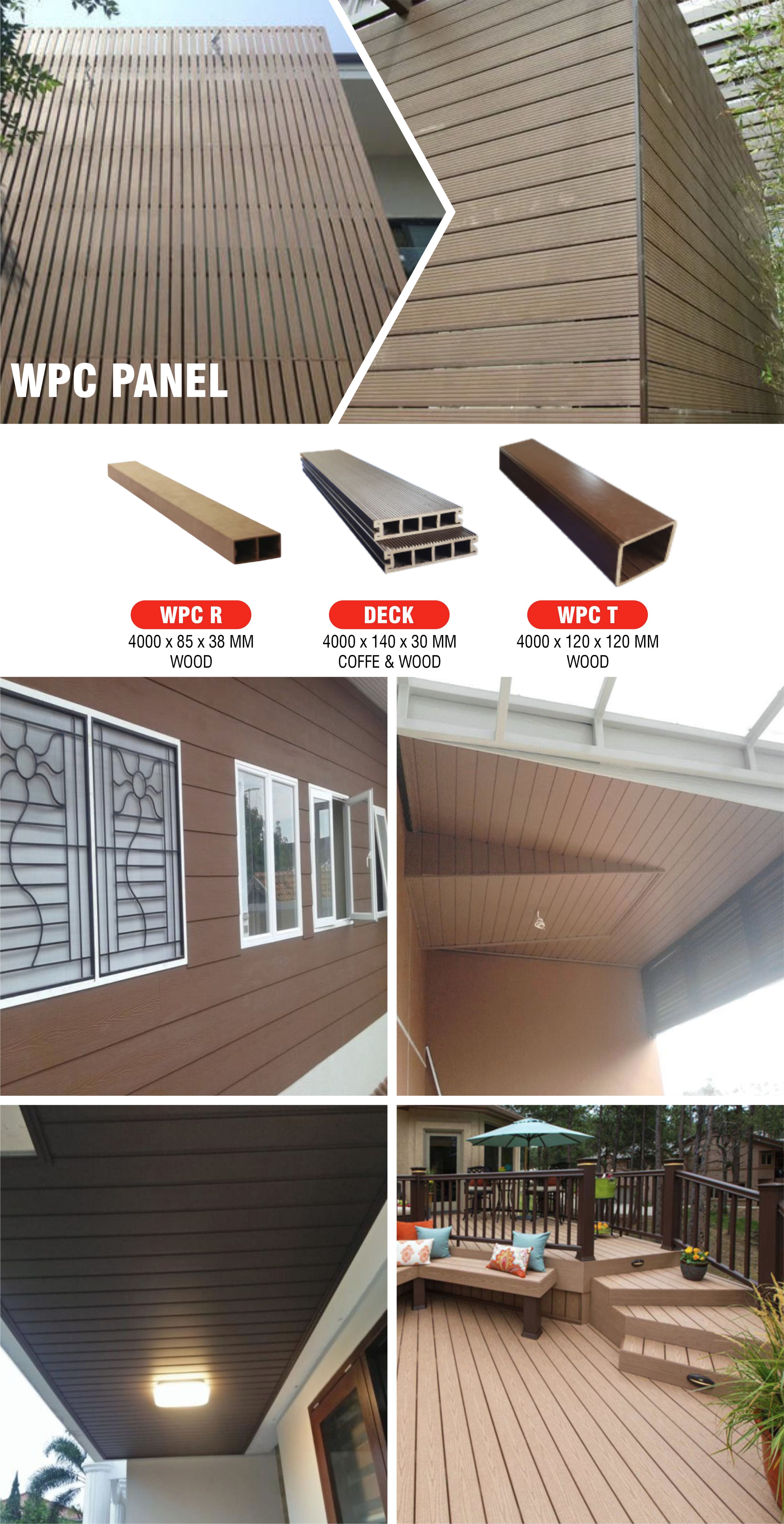 S-Plus WPC adalah hasil teknologi Eco Green yang mencampur/melebur serbuk kayu & termoplastik menjadi satu bahan komposit yang bisa digunakan sebagai alternatif pengganti kayu alami dan kayu lapis.